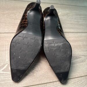 Easy Street Chiffon Pumps 2.5” Kitten Heel 8.5M Bronze Brown Patent Crocodile