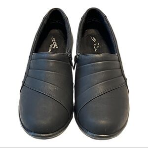 Easy Street Dee SlipOn Zipper Ruched Heeled Clog Black All Day Comfort Shoe 8.5M