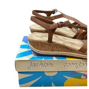 Easy Street “Dorinda” Faux Leather Wedge Sandals in Tan – Size 10 N – New in Box