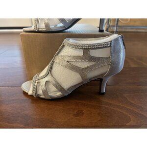 Easy Street Flattery Rhinestone Evening Sandals Heels Zip Silver NEW 7.5 W