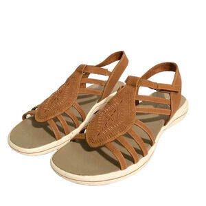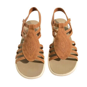 Easy Street Gemi Flat Tan Strappy Sandals, Size 10 Medium, New with Box