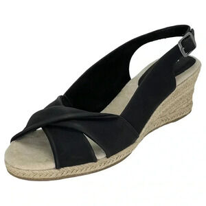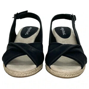 Easy Street Maureen Womens Super Flex Zone Black Wedge Dress Sandals Size 11M