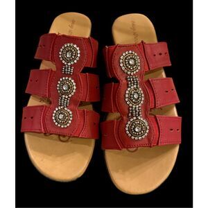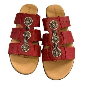 Easy Street Nori Slide Sandal Jeweled Trim Red Comfort 9.5W