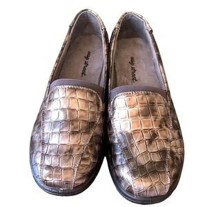 Easy Street Pewter Patent Leather Crocodile Gage Flat Loafers Size 8N NIB. Lightweight, rubber soles, cushioned insole.