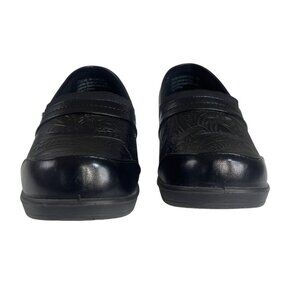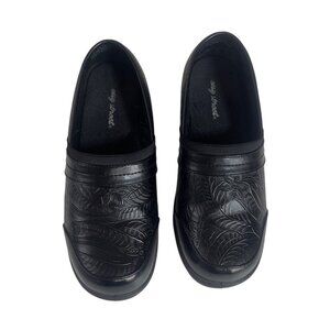 Easy Street Slip On Clogs Womens Size 10 Black Embossed Leather
