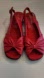Easy Street Soft Red slingback Wedge Sandals Block Heels Ankle Strap Retro NWOT