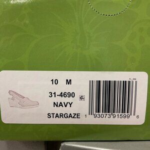 Step into summer style with these Easy Street Stargaze navy wedges. The classic espadrille platform and comfortable slingback design make them a perfect choice for warm weather. With a retail value of $100, these shoes are a great value.