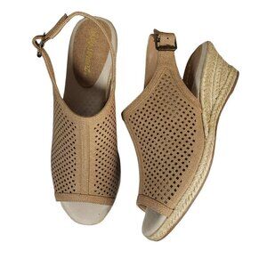 Easy Street Tan Stacey Espadrille Wedge Open Toe Slingback Sandals Sz 9N