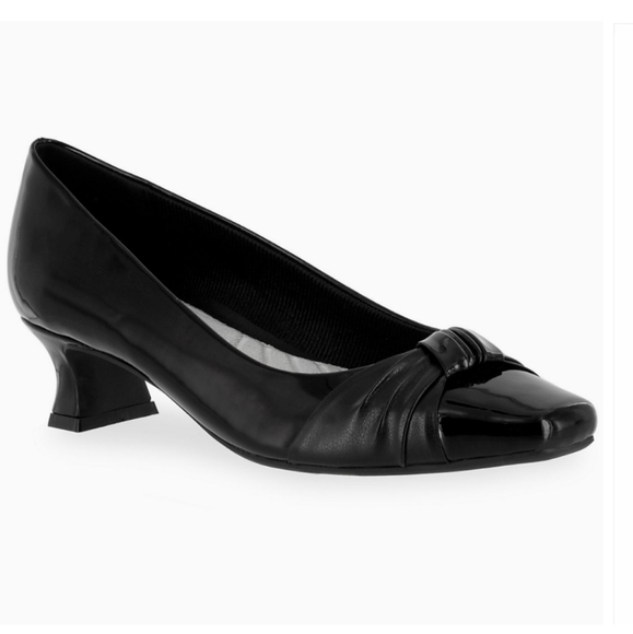 With a simple, elegant gathered overlay that is appropriate for many occasions, these women's Easy Street pumps are an instant classic.