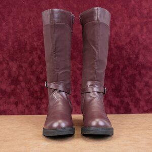 Easy Street Women Erica Burgundy Wide Calf Faux Leather Riding Knee Boots sz 10