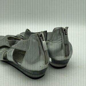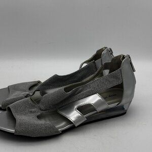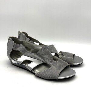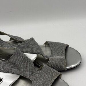 Easy Street Womens 7M Metallic Silver Wedge Sandals Open Toe Stretch Comfort