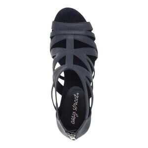 Women's Amaze Caged Sandals by Easy Street. Upgrade your summer style. With a convenient back zip, this style has lots of straps to cover the foot in an edgy way that is both trend right and secure. The super flex footbed on a blocky heel is supremely comfortable. Easy flex outsole. Zip closure.