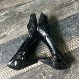 Easy Street Women's Black Patent Peep Toe Heels Shoes Size 6.5