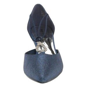 Elegant and versatile, these navy glitter kitten heels are designed for comfort and style. The rhinestone embellishment adds sophistication.