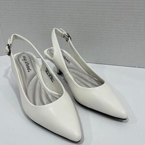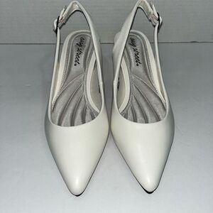 Easy Street Womens Faye Pointed Toe Kitten Heel Pumps. Size 8. Color: White