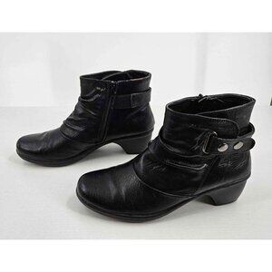 Easy Street Wynne Comfort Wave Black Bootie Inside Zip Rushed Vamp Studded Strap Size 10