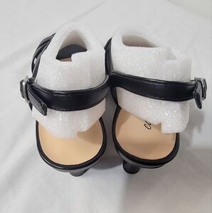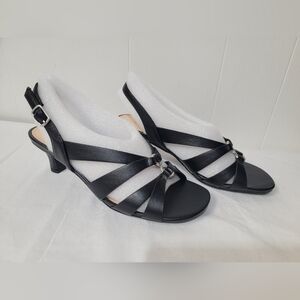 New In Box Easy Street Zazie Strappy Black Sandal Women's Size 6 Wide. Low dress heel, flex outsole, padded insole, faux leather, buckle closure, 2" heel. Step out in style with these elegant black women's sandals. Perfect for any occasion, these sandals offer both comfort and sophistication.
