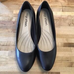 Easy Street brown almond toe 2.5 “ squash heel plain brown pumps. Size 8 W