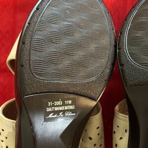 So cute and comfy! These stylish white wedges from Easy Street feature a breathable perforated design and a comfortable slingback strap. The medium-height wedge heel adds a touch of elegance, making them perfect for warm weather outings. Worn once!