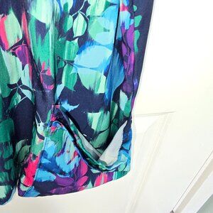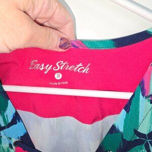 Easy Stretch Scrub Top Green Blue Pink Purple Leaves Size 3X Lace Up Front