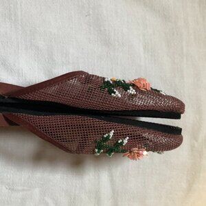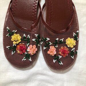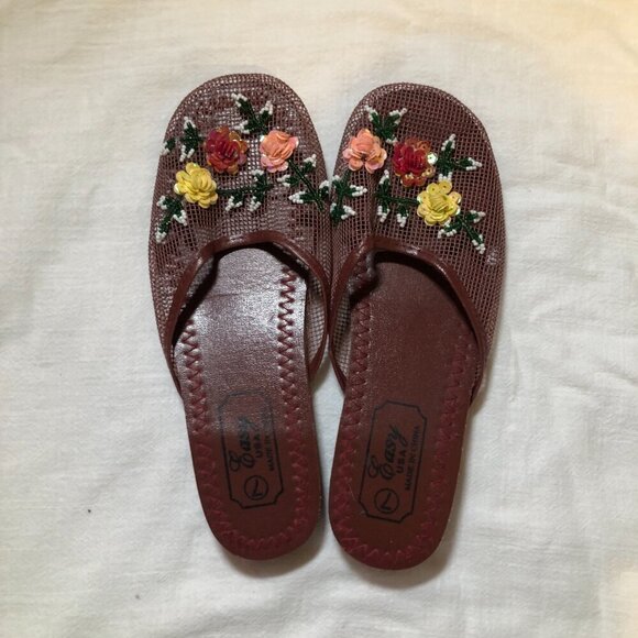 Easy U.S.A. Chinese Slippers with Roses Brown Size 7 NWOT