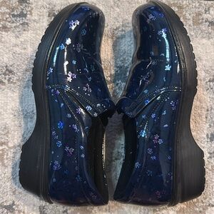 Easy Works nursing clogs by easy street. Blue floral print shoes.