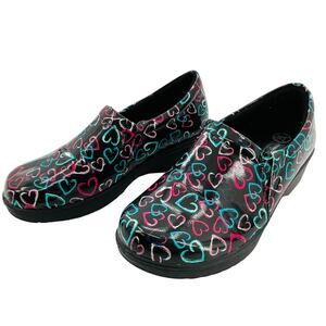 Easy Works by Easy Street Tiffany Black Pink Aqua Hearts Comfort Clogs Shoes 7W