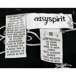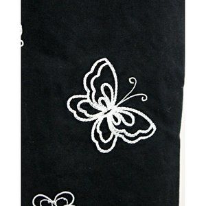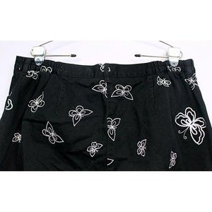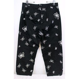 Easy spirit Woman Sz 18 Black Pants White Butterfly Embroidered Pattern All Over