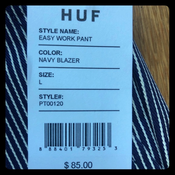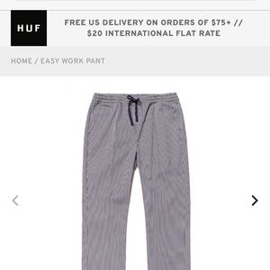 Current season, still full price on Huf website. Denim ish material but read full description on their website. Nice waist, comfortable. Cuff on pant. Pockets.