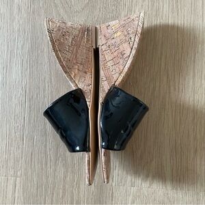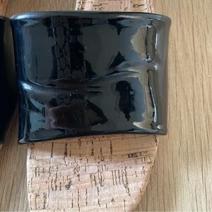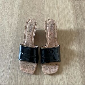 EasyFox woman’s Black patent Slide Sandals size 9 runs smaller wedge spring shoe