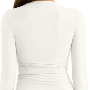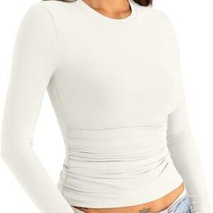 Chic and flattering long sleeve ruched top with soft double-layered fabric that hugs your curves in all the right places. Lightweight, stretchy, and versatile — perfect for layering or wearing solo. Style it with jeans, skirts, or leggings for a casual street look or a sleek going-out outfit. Great for work, everyday wear, parties, and Y2K-inspired fashion vibes.