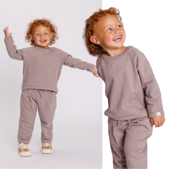 Comfortable kids' sweatshirt and joggers set. Perfect for playtime and lounging. Soft fabric for all-day wear.