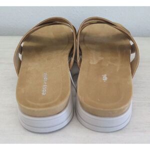 Easy Spirit Women's Sz 10M Tan Woven Leather Cushiony Slide-On Wedge Sandals