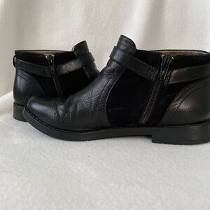 EasySpirit e360 Black Leather Size 6M Ankle Boot. Preowned item in good condition with minimal wear on heels and shoes. Please look at all pictures.