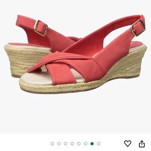 Women's Easy Street, Maureen Sandal. This chic sandals will keep you strolling in comfort. Easy care manmade uppers with fabric liningSlingback strap with adjustable buckle closure and hidden stretch gore for a comfortable fitFoam cushioned footbed for added comfort2 inch espedrille style wedge heelManmade outsole