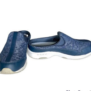 These shoes have a beautiful navy blue and shiny silver design. They will look great when you need something comfortable to quickly step out in.