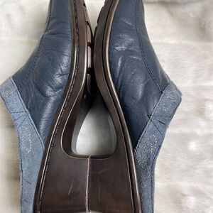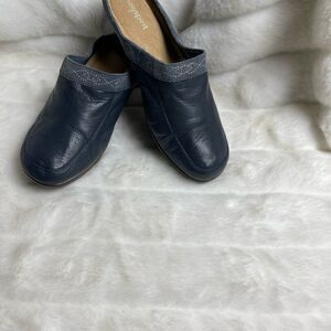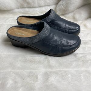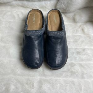 Easy Spirit leather navy blue clogs 3”heels rubber soles size 9.5W