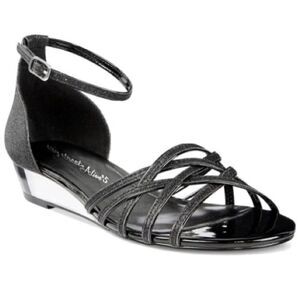 Easy Street Alive @ 5 Tarrah Evening Low Wedge Black Glitter Sandals 7.5W New