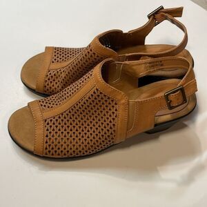 Easy Street Riza womans slingback sandals. Excellent condition. Like new. Light brown/tan. Soft padded insoles. Adjustable backstrap. Open toe. Smoke free home. Ships within 24 hours. Questions feel free to message me.