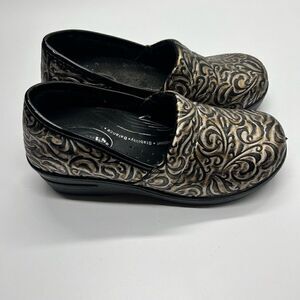 Easy Works by Easy Street | Black/Gold/Silver 6 Wide Clogs