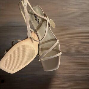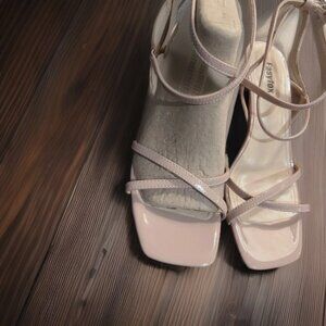 Easyfox Strappy Chunky Heels | Square Toe Sandals | NWOT Size 6.5 Nude Patent
