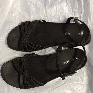 black sandals, adjustable ankle strap. size is worn off but purchased new at size 10