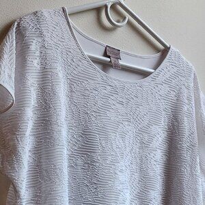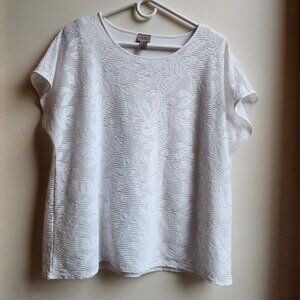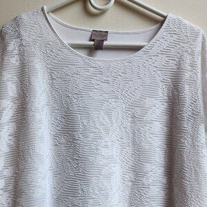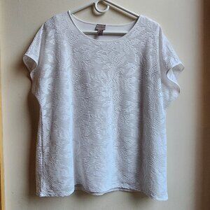 Easywear By Chico's White Layered Scoop Neck Blouse Size 2X. Pretty etched layer over another solid white layer. Elegant and a great shell to a suit or wear by itself. Excellent condition!