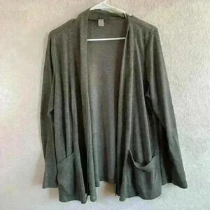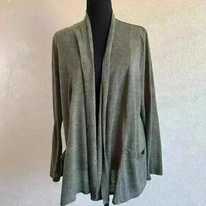 Easywear by Chicos Knit light breezy Cardigan Pocket Moss Hunter Green Women 3