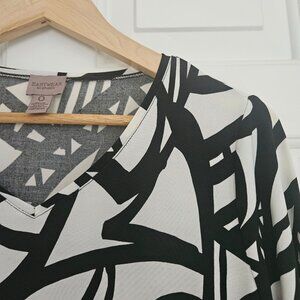 Easywear by Chico's Top Tunic Stretch Artsy Geometric Black White Size 0 (Small)
