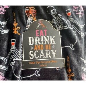 Eat Drink and Be Scary Halloween Skeleton Throw Blanket 60x70 Black Cozy Soft