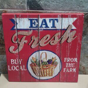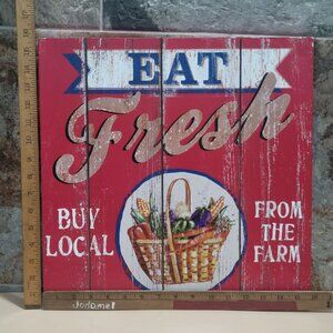 Eat Fresh Buy Local From The Farm Wooden Wall Hanging Sign