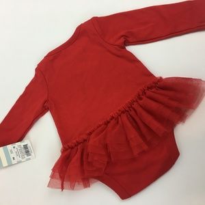 NEW WITH TAGS bodysuit reads "Eat, Sleep, and be Merry" and features holly berries/greenery with a bit of glitter. Text is slightly flocked. Made by Baby Cat & Jack. So adorable for a precious new baby girl! Complete with a soft red tutu. Lap neck and snap crotch make dressing and diapering easy. SIZE IS NEWBORN; should fit babies 18-20" long and 6-8.5 lbs. Color is "wowzer red".