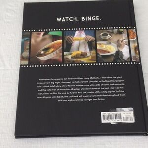 Explore cinematic cuisine with 'Eat What You Watch' by Andrew Rea. This cookbook features a sleek black cover and offers recipes inspired by iconic films. Perfect for movie enthusiasts and food lovers alike.