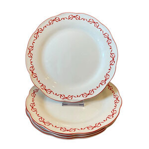 Eaton Fine Dining Red Bow Border Ceramic Appetizer Plates 7.5in Set of 4 New